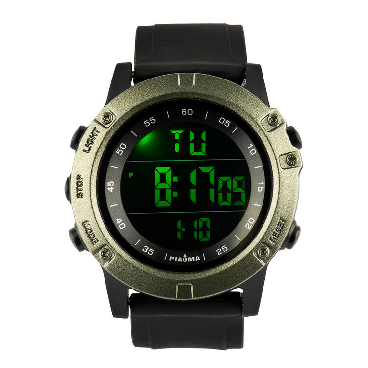 نمایش 24 ساعته , نمایش ساعت دوم , تاریخ شمار , نور پس زمینه , تایمر , آلارم , کرنوگراف