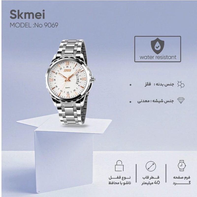 موتور ژاپن .باتری ژاپن . ضد آب 3atm . تقویم روز . بند استیل ضد زنگ ضد حساسیت شیشه معدنی قطر صفحه 40 میلیمتر جعبه اسکمی باتری یدک ارسال سریع