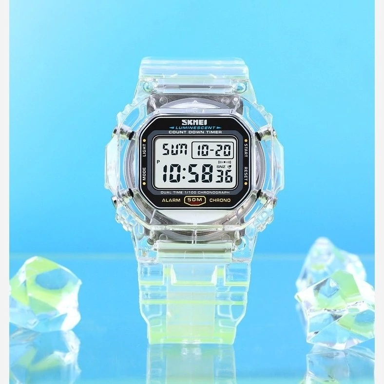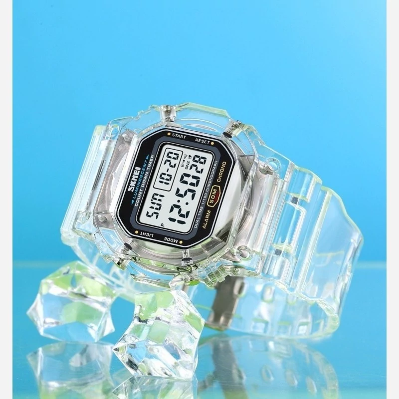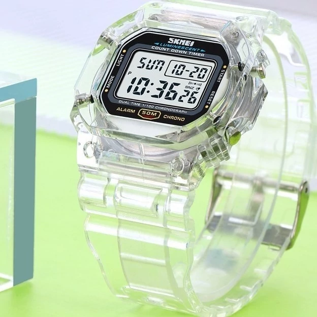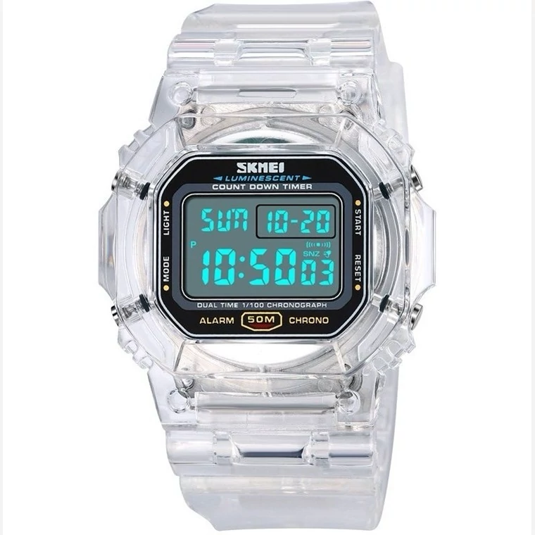 بند شفاف .ضد آب 5at. موتور ژاپن . نورپس زمینه( بک لایت) کورنومتر . آلارم . قاب پشت استیل . تقویم جعبهwatch بارکد اصالت