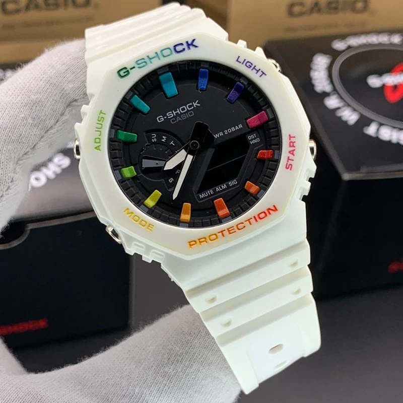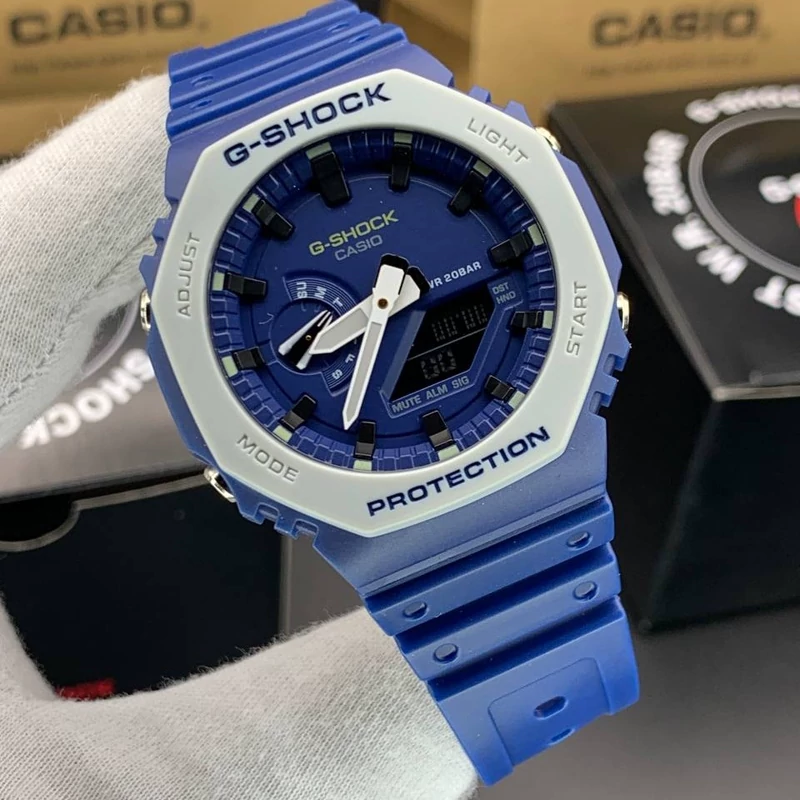 ساعت کاسیو G-Shock به دلیل دوام ناهموار و ویژگیهای قابل توجه مقاومت در برابر ضربه یک انتخاب محبوب است. طراحی شده برای مقاومت در برابر شرایط سخت، برای فعالیت های خارج از منزل، ورزش و استفاده روزمره ایده آل است. این ساعت طیف گسترده ای از عملکردها مانند مقاومت در برابر آب، سنسورهای متعدد، نمایش زمان جهانی، آلارم و ویژگی های کرونومتر را ارائه می دهد. طراحی قوی و شهرت آن برای قابلیت اطمینان، آن را به یک سرمایه گذاری طولانی مدت برای کسانی تبدیل می کند که به دنبال ساعتی محکم و قابل اعتماد هستند.