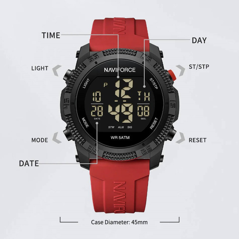 نمایش 24 ساعته , تاریخ شمار , صفحه طرحدار , نور پس زمینه , تایمر , آلارم