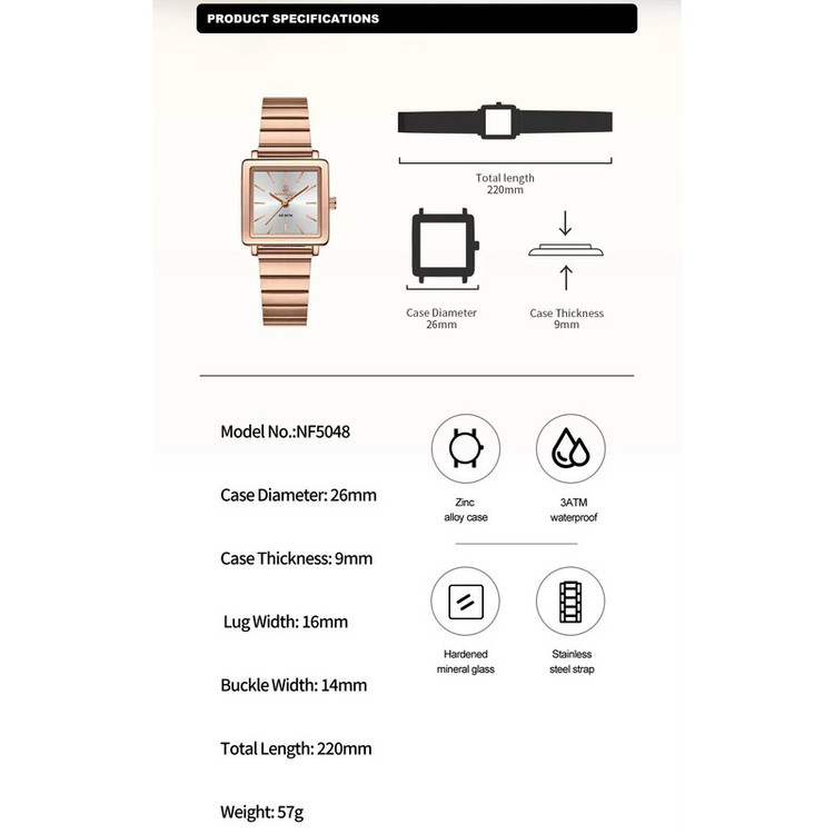 ساعت مچی عقربه‌ای کوارتز زنانه نیوی فورس مدل NF5048RGWRG