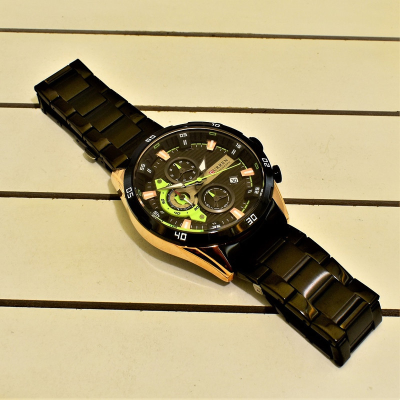 سایر توضیحات : کورن واچ چهار موتوره کرنوگراف رنگ مشکی قاب رزگلد صفحه رنگی بهمراه جعبه لوگودار طبق تصویر . ساخت چین